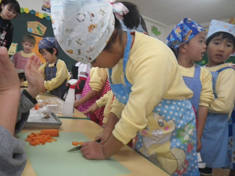 一般的には切れる包丁の方が重宝しますが、園児が使っているものは