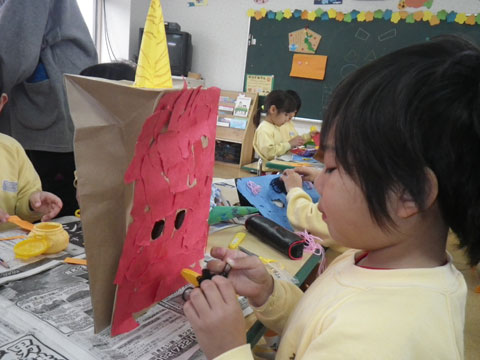 そして金曜日の豆まきで使用する“鬼の面作り”
