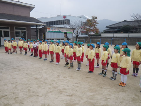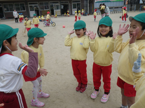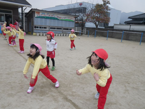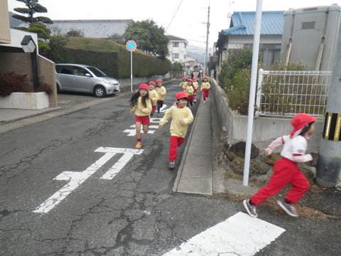 年長組さんが2周走ったときには、こうやって出迎え付き