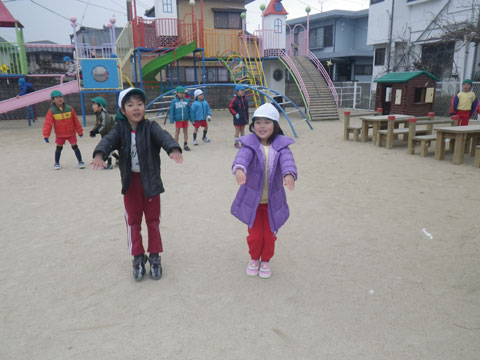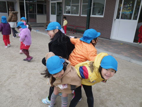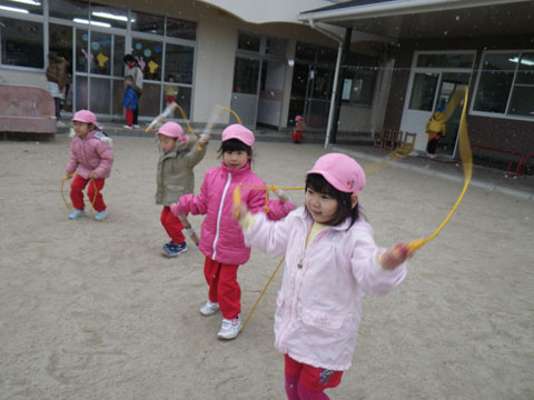 こうやって、“なわとび”や“おしくらまんじゅう”で