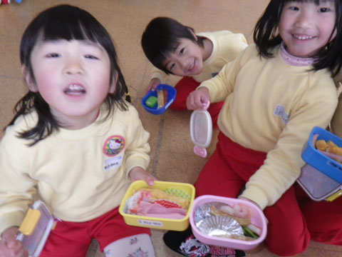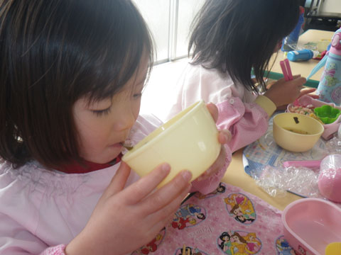 もうお友だちと話しながらでも、前を向いて食べててもよかったのですが、