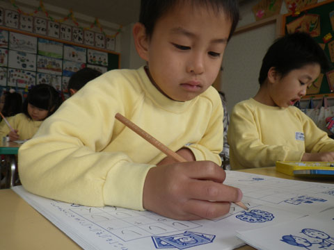 『しゃしん』や『くじゃく』と書く練習のはずが、