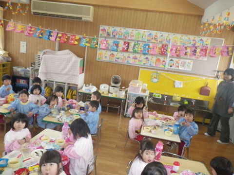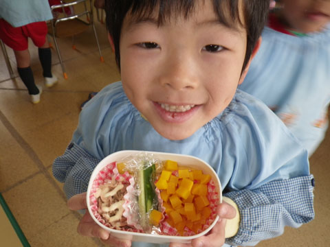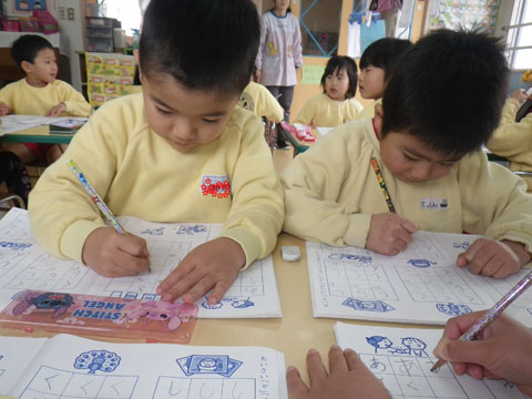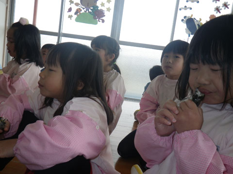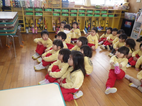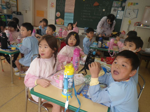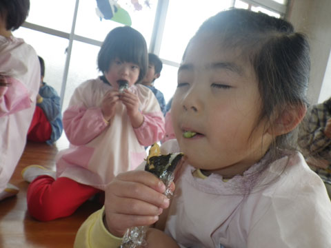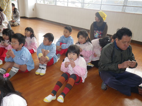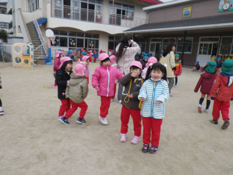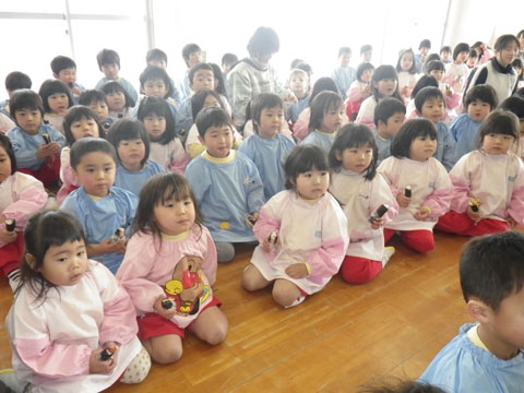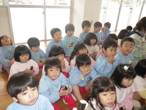 幼稚園でも豆まきをします