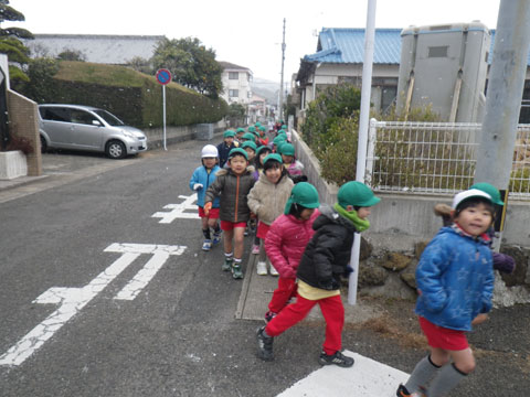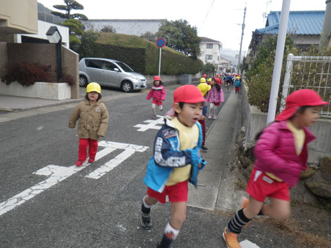 園外1周マラソン開始!(年長組さんは2周!)