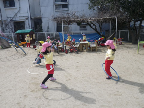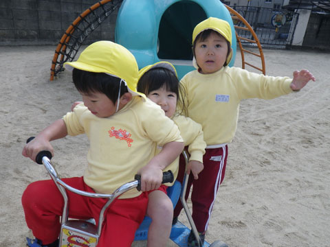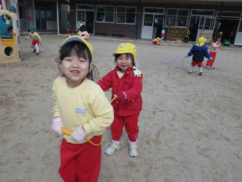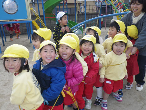 なわとびでの電車ごっこも、いつのまにかおしくらまんじゅう状態に