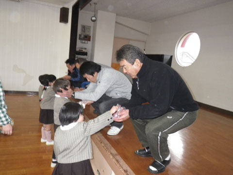 一人ひとりのお兄ちゃん・お姉ちゃんに手渡しで感謝の気持ちとともに・・