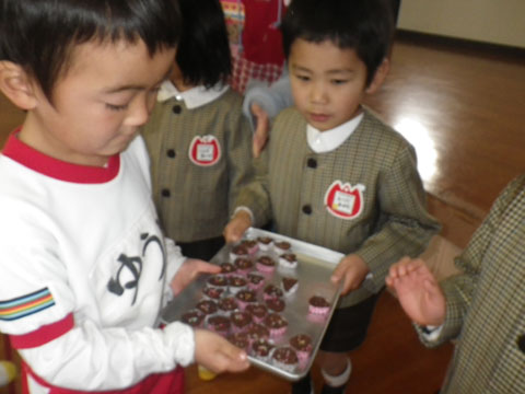 「きのうつくったちょこれーとと、どっちがおいしいかな〜?」