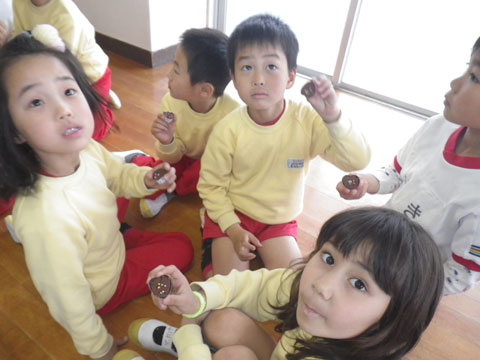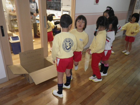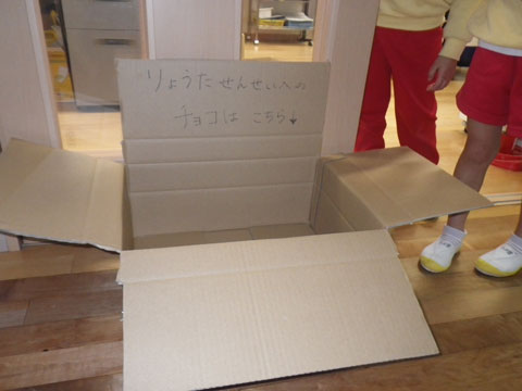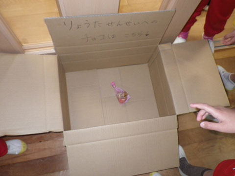 「きてきて〜、だんぼーるにチョコはいっとるよ〜!」