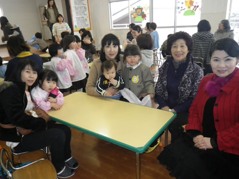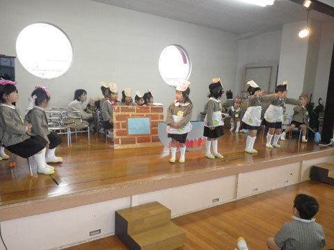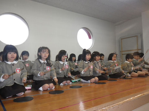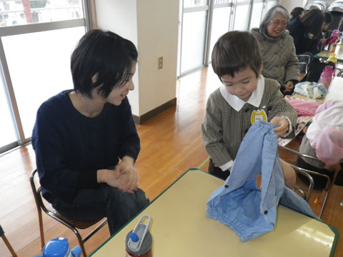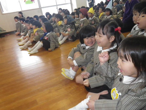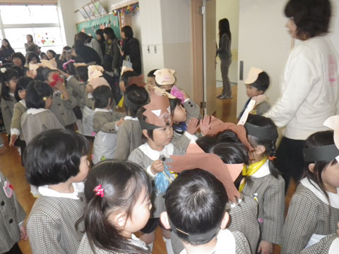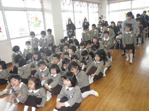 ちょっぴりドキドキしながら、おゆうぎ室に集合。