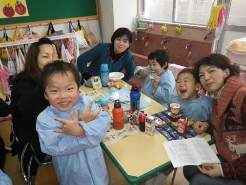 頑張った後はそれぞれの教室・おゆうぎ室でカレーパーティー