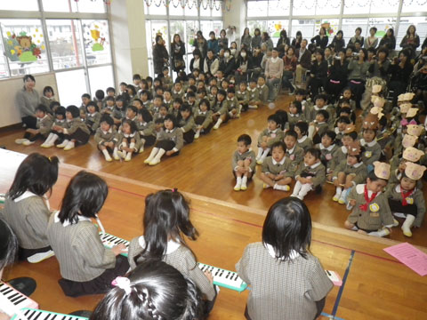 こんなに沢山のお客さんの前ですが、運動会・おゆうぎ会など大舞台を経験してきたみんな。