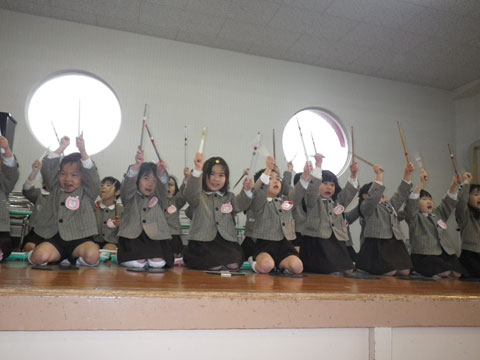 写真じゃ伝わりづらいんですが、年中さんのスティックを見て、楽しそうに真似している
