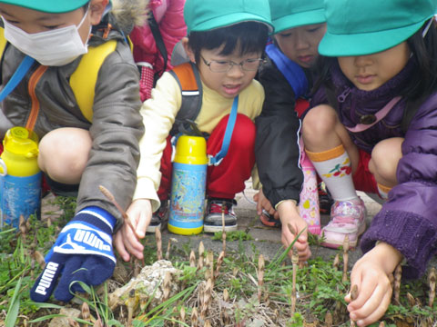 横断歩道で挙げる、その手の先には“つくし”が握られて