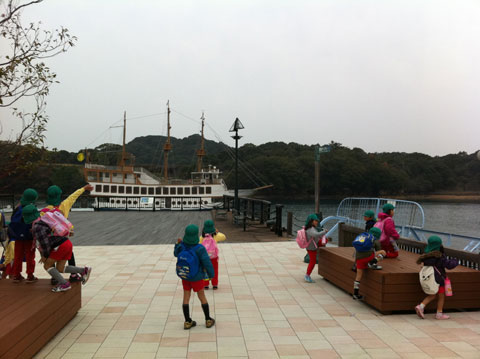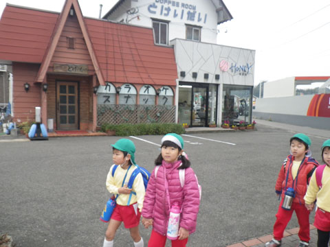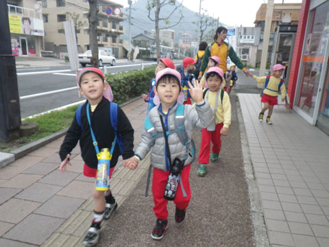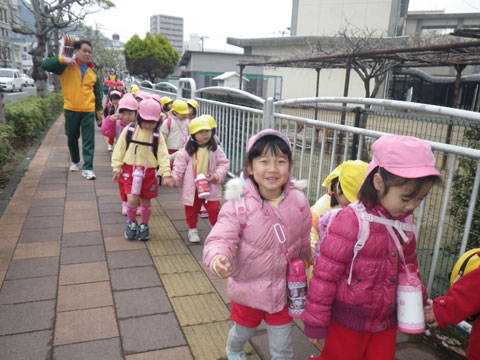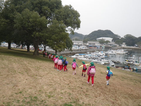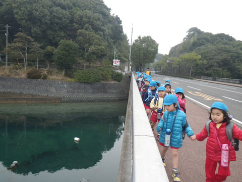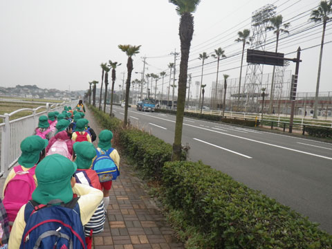 年長組さんは、パールシーまでの約4キロを徒歩で