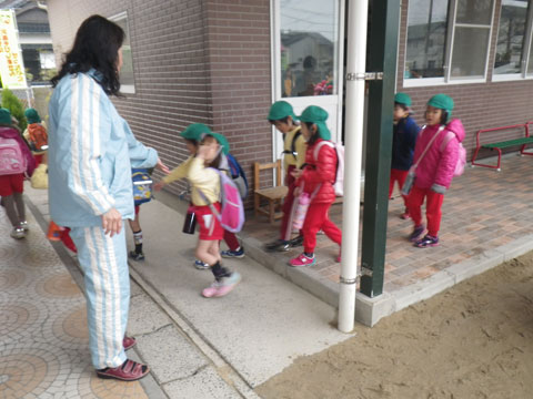 バスに乗り込んだ年中少組さんが颯爽と通り過ぎていきます