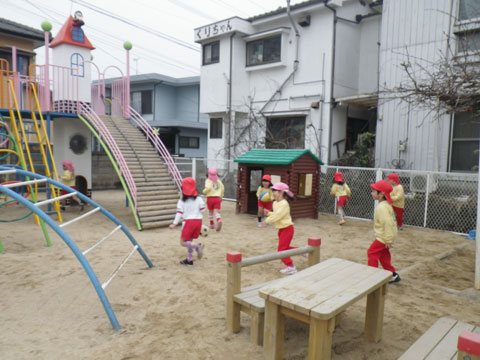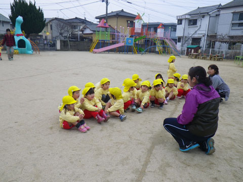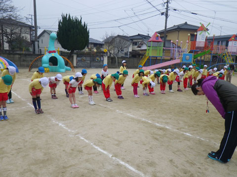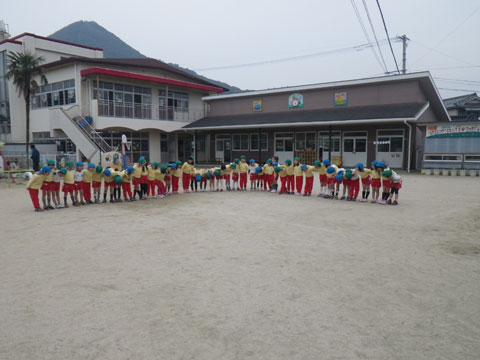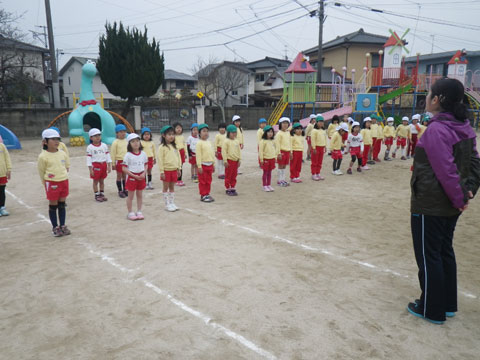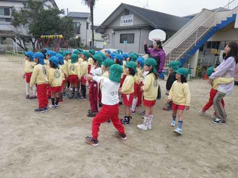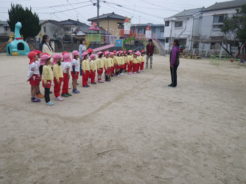 食後、園庭に集まった年長組さん
