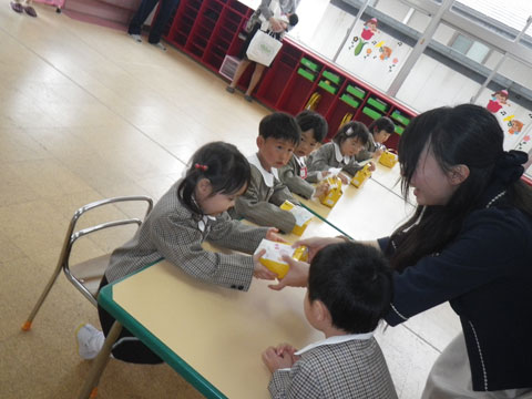 教室へ入り、お話とお土産