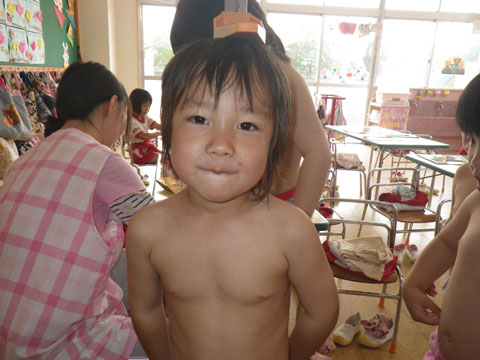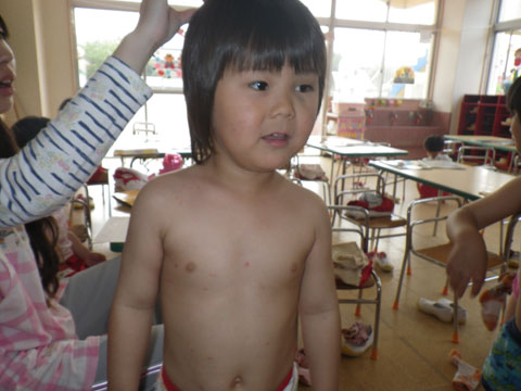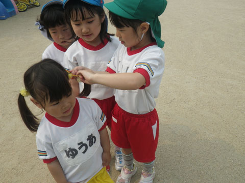 連休を経て、髪が短くなっている園児は大人っぽく見え、