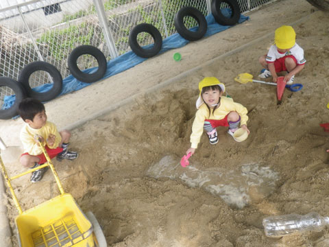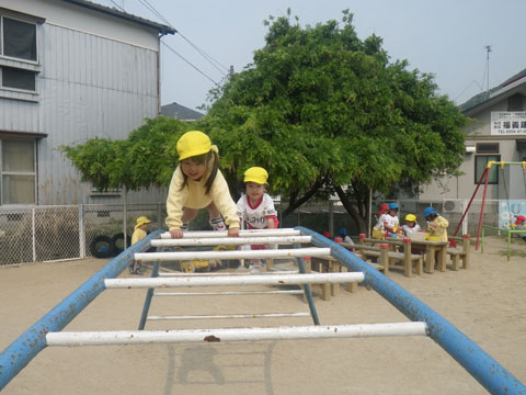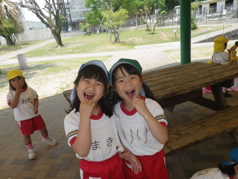 そんなウキウキの朝でもまずはウォーミングアップに外遊び
