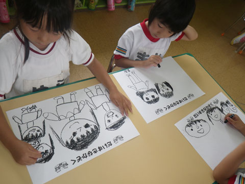 年少組のみんなが時計を製作中