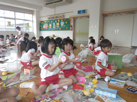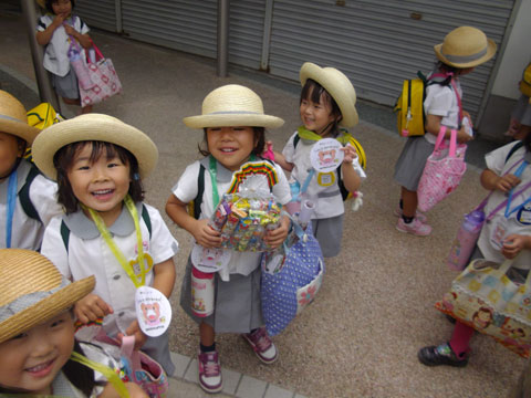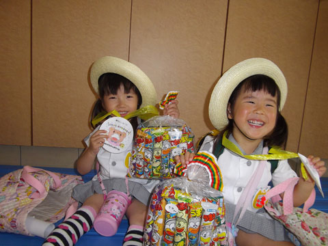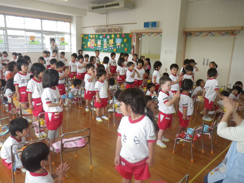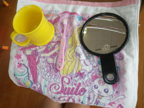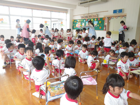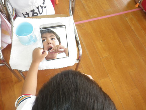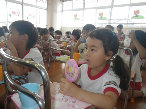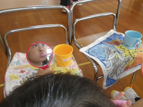歯ブラシ、手鏡を持ちおゆうぎ室へ集合