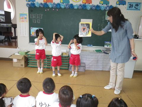 前に出た園児がきちんと触れているかみんなでCheck!!