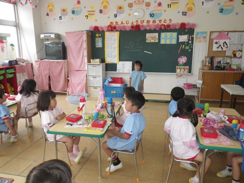今日が誕生日の園児にクラスメイトから♪ハッピーバースデー