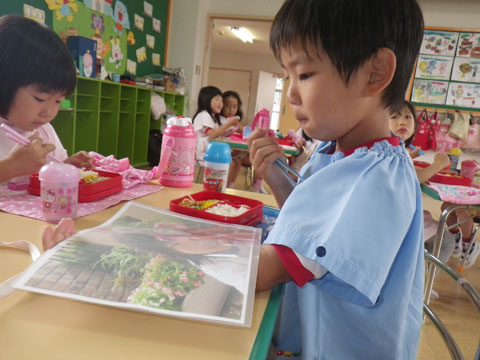 お姉ちゃんの写真を見ながら・・給食中