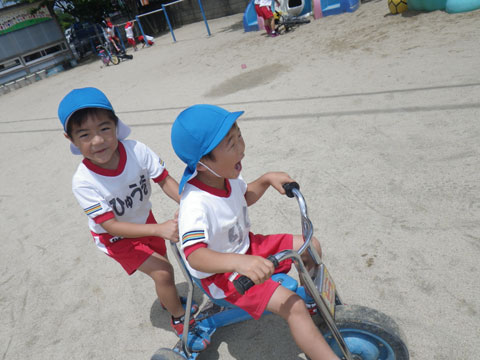 友だち同士でクイズを出し合ったり、自転車(三輪車)で