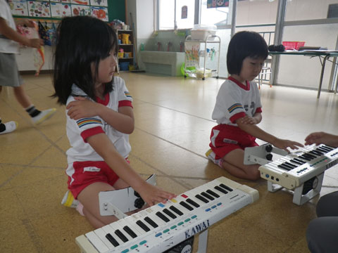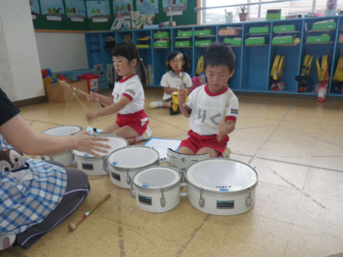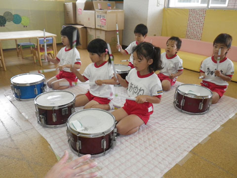 年長組さんは遊びだけではなく、マーチングの練習も