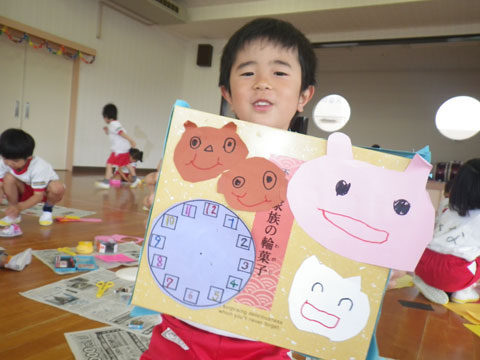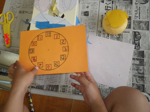 年長組のみんなが昨日から製作中の“時計”