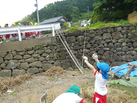 ついに完成した東相浦幼稚園児との合作の七夕飾り