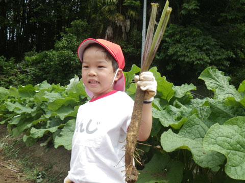 「はたけでごぼうほったぜ〜、ワイルドだろ?」