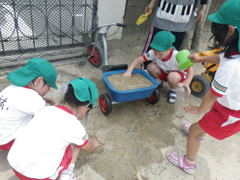 暑いのはみんな同じ!というわけで午後は水(泥んこ)遊び
