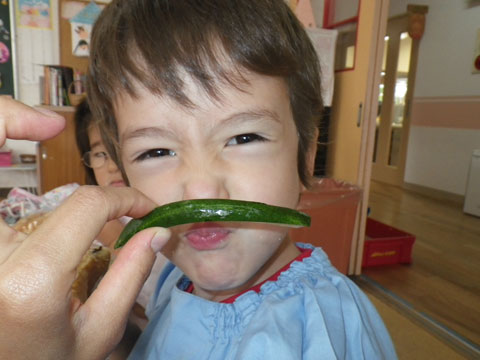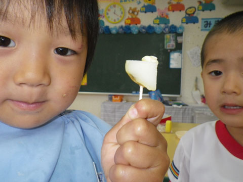今日の副食には、一昨日 年長組さんが収穫してきた、