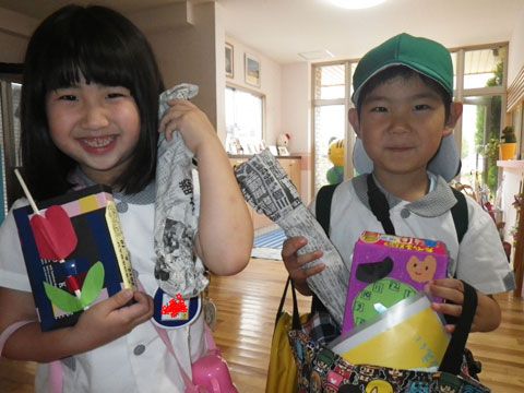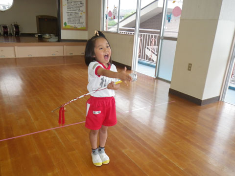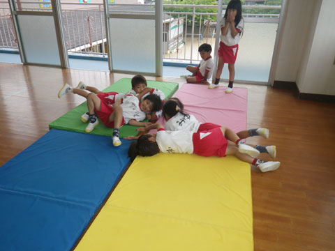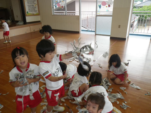 年中組さんはおゆうぎ室で新聞紙を使ってハッスル中