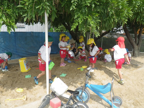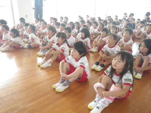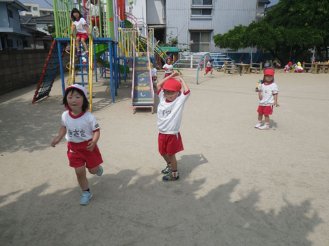朝は小雨でしたが、全園児が登園するころには雨も上がり・・