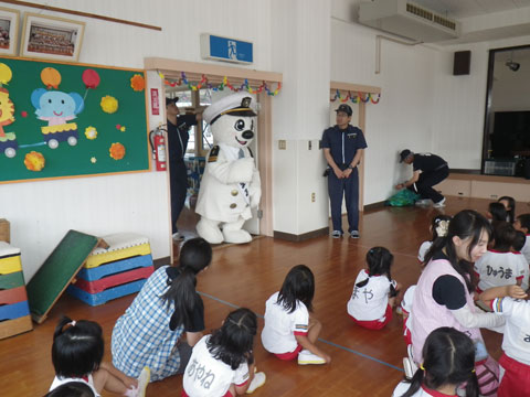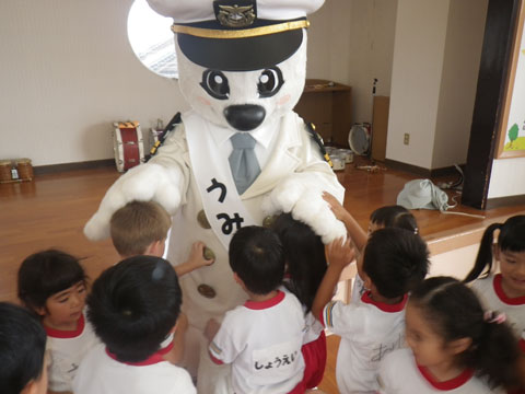 海上保安庁のマスコット、うみまるくんが来園