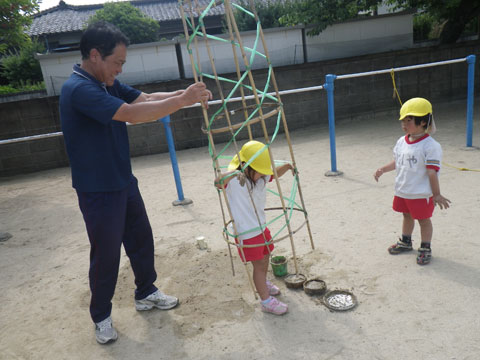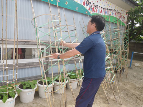 先日みんなで植えたアサガオがきれいに大きく育つように、