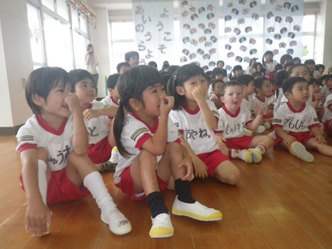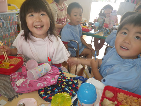誕生会が終わり、給食を食べた後は・・食後の散歩へ!