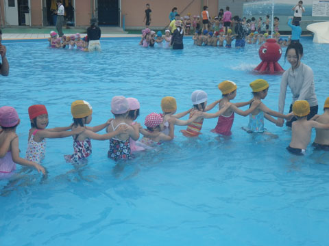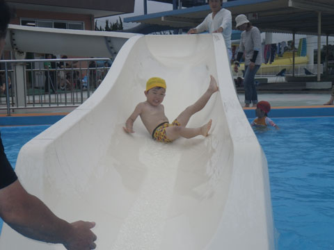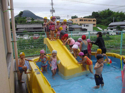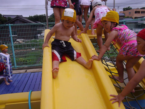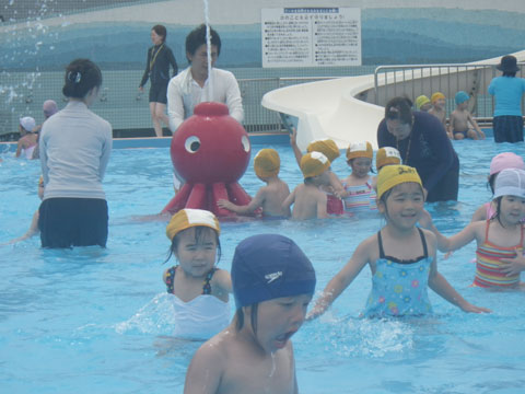 幼稚園でのたこちゃんプールデビューです