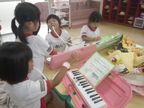 朝は鍵盤ハーモニカの練習(あそび?)や、