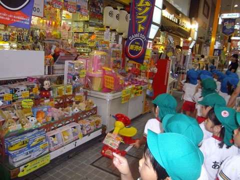 おもちゃ屋さんの誘惑や、最近できた餃子屋さんの誘惑に打ち勝ちながら帰路へ・・