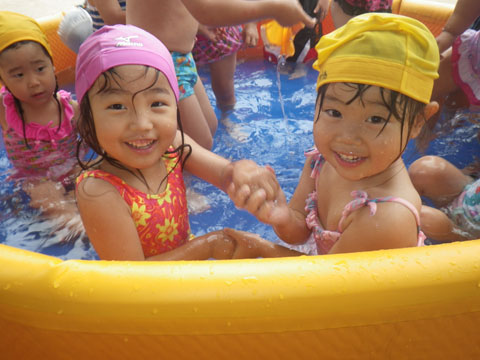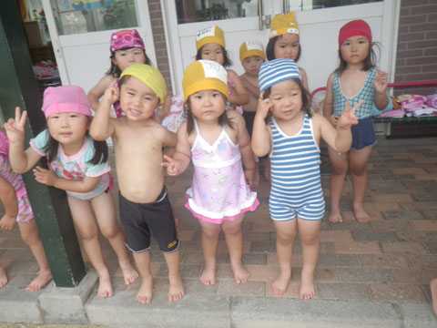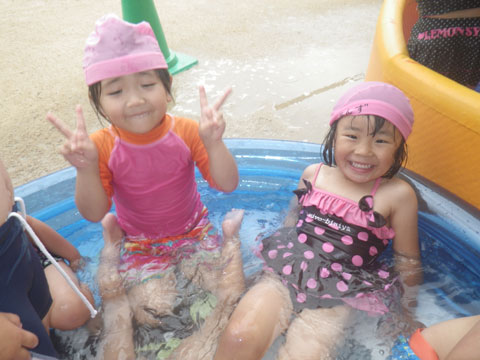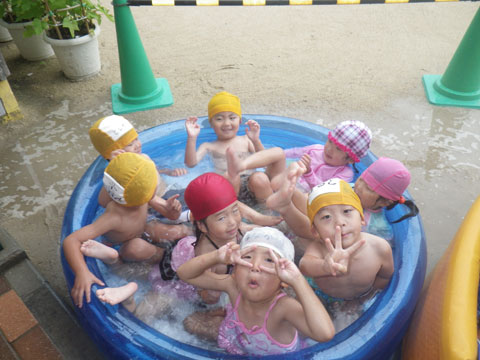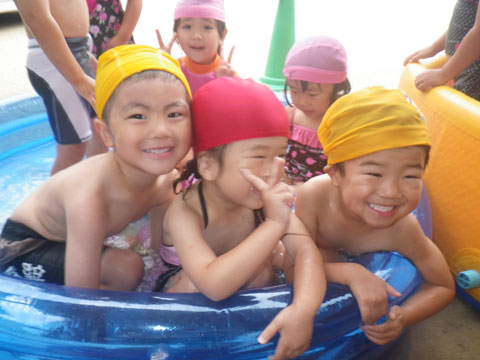 たんぽぽぐみは・・・、東相浦でのプール遊びは天候を考慮して