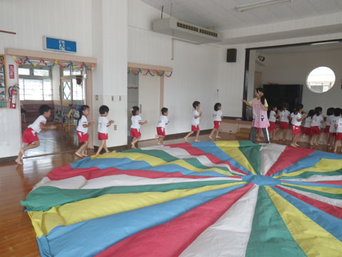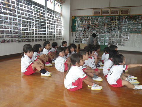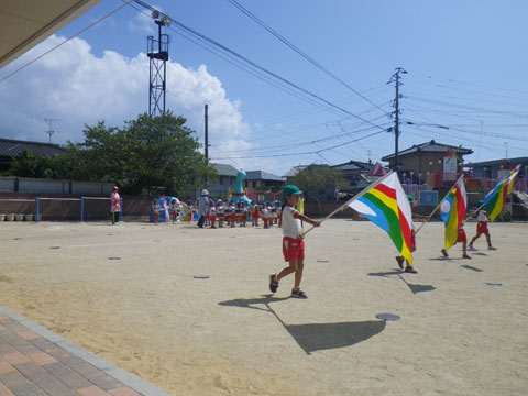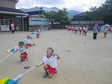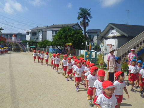 年長組さんのマーチングはついに外での楽器を使用した練習に突入
