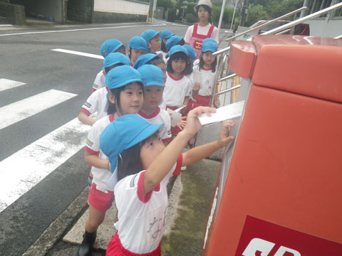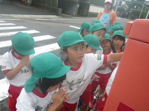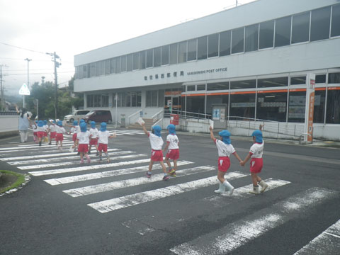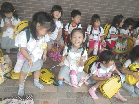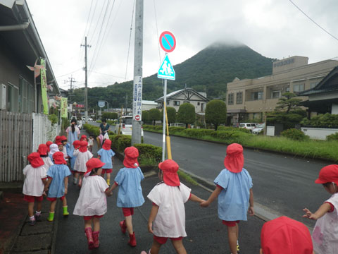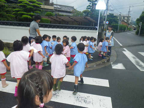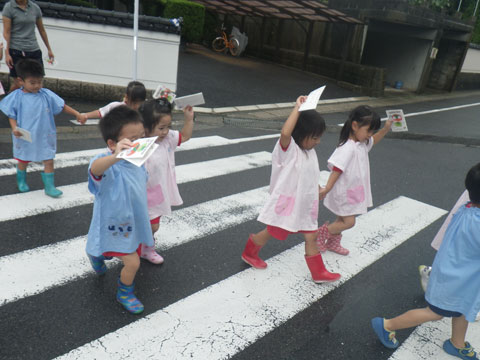 そして、雨がやんだのを見計らって、年中組・年少組さんがお出かけ