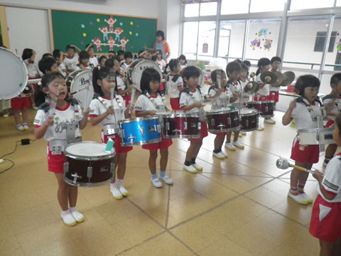 年少組さんも新聞紙を使ってメジャー(指揮)のマネ