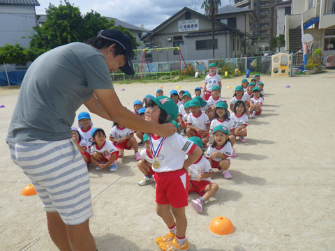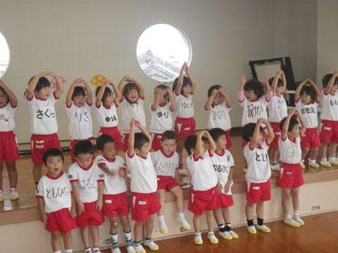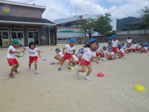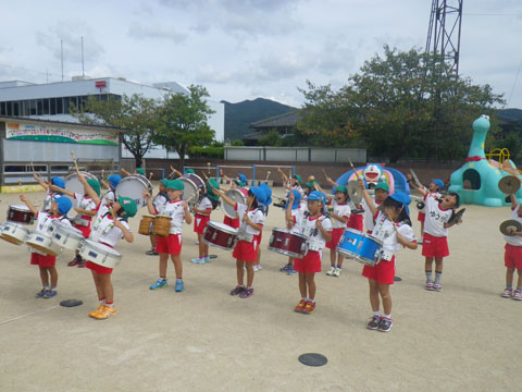 その頃、幼稚園でもマーチングに組体操、練習もいよいよ大詰めです