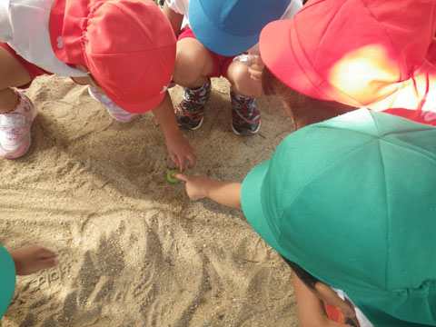 午後も元気に遊ぶ園児と、早めに着替えて帰る園児・・、