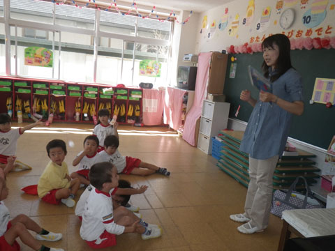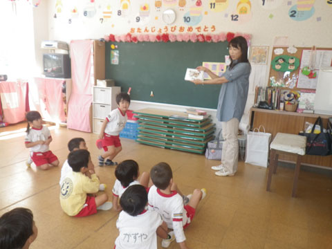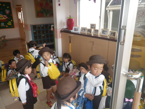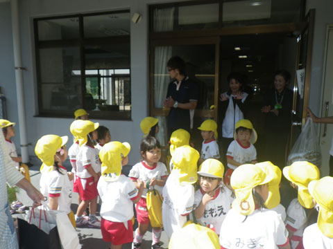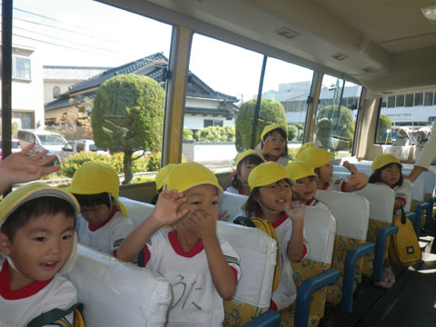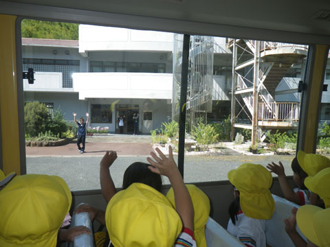 英語教室をfinishした年少組さんがバスに乗り込み、